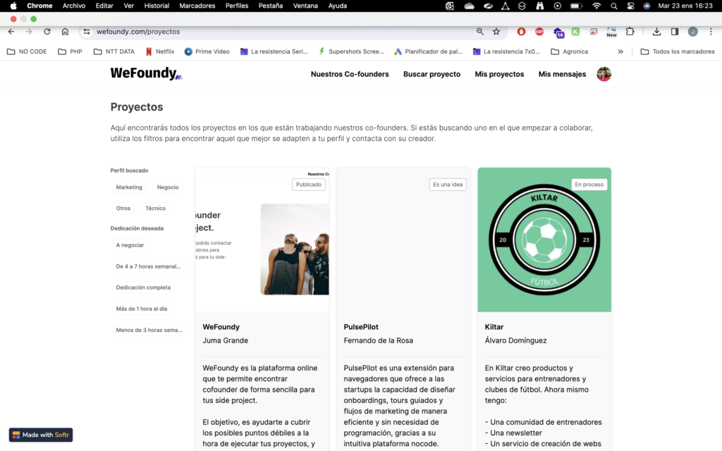 Como caso de uso real persona, ha sido utilizar Airtable como back-end de una aplicación creada en Softr llamada WeFoundy.
